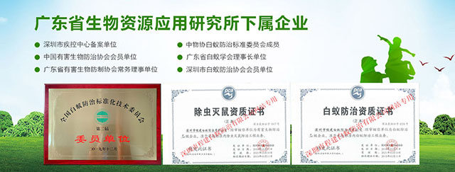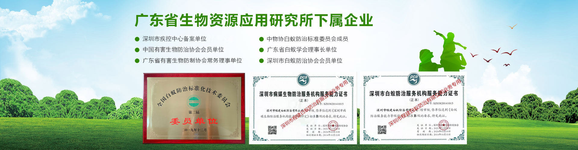 專注于徹底根治、防治結(jié)合,售后跟蹤服務(wù),專業(yè)服務(wù)工程師有豐富實戰(zhàn)經(jīng)驗超過十年。持有專業(yè)資格證書認(rèn)證:“有害生物防制服務(wù)機構(gòu)服務(wù)能力證書B級”、“白蟻防治服務(wù)機構(gòu)服務(wù)能力證書B級”所有員工持有“深圳市白蟻防治上崗證”和“深圳市除蟲滅鼠上崗證”,雙資格證上崗服務(wù)。榮獲過:“優(yōu)質(zhì)服務(wù)示范單位”、“白蟻防治服務(wù)信譽AAA級單位”、“深圳市白蟻防治先進單位”、“深圳市十大白蟻防治品牌”、“深圳市殺蟲公司”、“深圳市消殺公司”先進單位等榮譽。